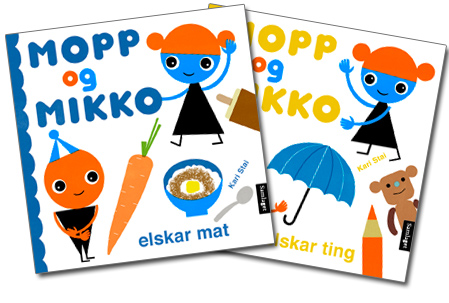 I år kjem det ut fire splitter nye peikebøker for dei minste. Bøkene handlar om dei to venene Mopp og Mikko, som elskar mat, køyretøy, dyr og ting. I dei to bøkene Pirion-redaksjonen har lese, blir vi med Mopp og Mikko på jakt etter variantar av mat og ting. Dei finn mellom anna gul mat, lang mat, søt mat, blå ting, mjuke ting og harde ting.