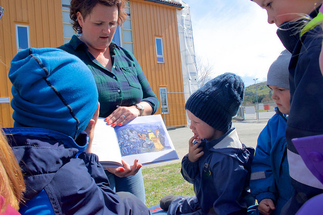 • Kan vera verdifullt for barnehageborn å lesa opp teksten med ord.