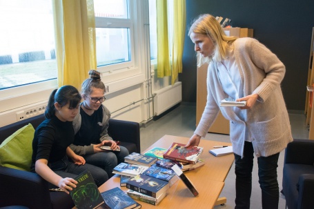 Ho og klassevennina Titti Josefine Nilsen stortrivst på skulebiblioteket, men etterlyser fleire bøker. Spesielt innan skjønnlitteratur. Helst dei om spøkelse og fantasy.
