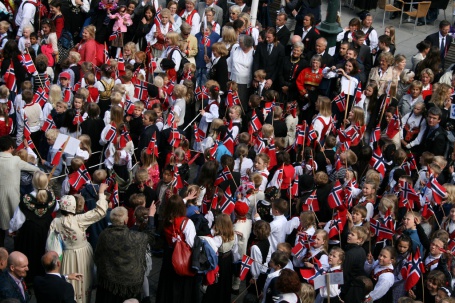 Kor mange av elevane i klassen kan syngja første verset av «Norge i rødt, hvitt og blått»?