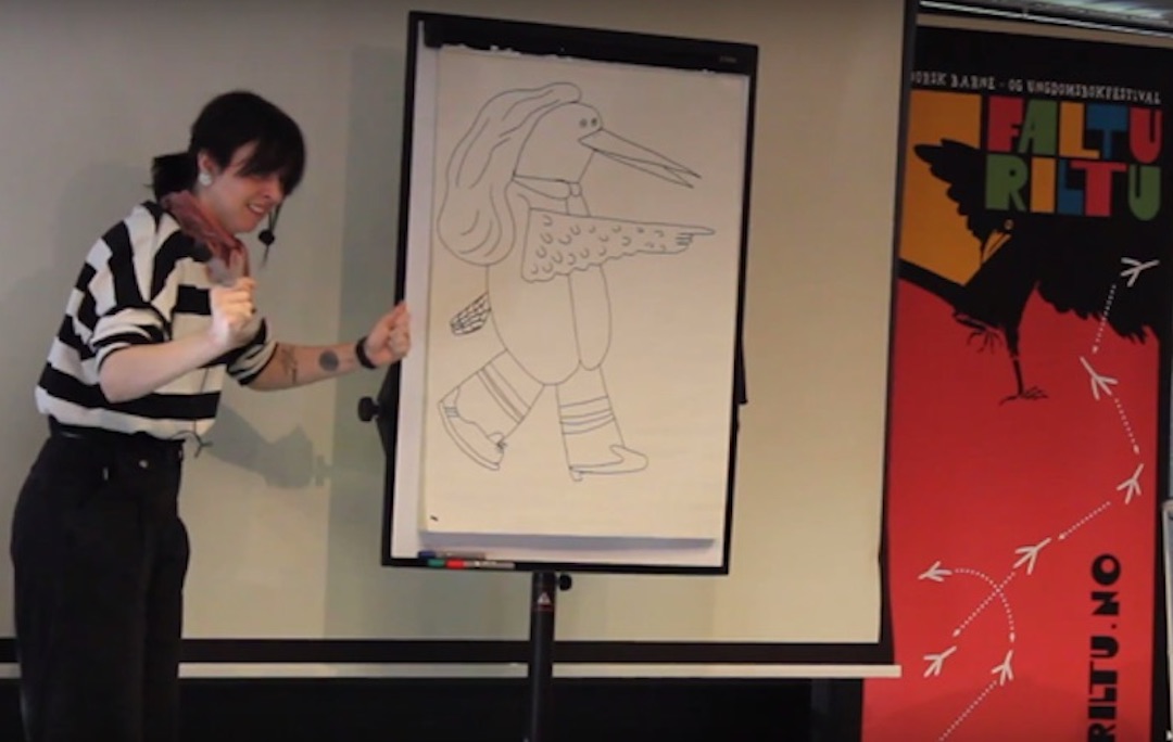 Etter at Marianne Gretteberg Engedal var ferdig med boka viste ho ein kort film der ho teikna illustrasjonane som er i boka. Så tok ho fram ein tusj og begynte å teikna med hjelp frå barna. Det blei litt kaos i rommet når barna ikkje kunne bli einige om korleis kråka såg ut.