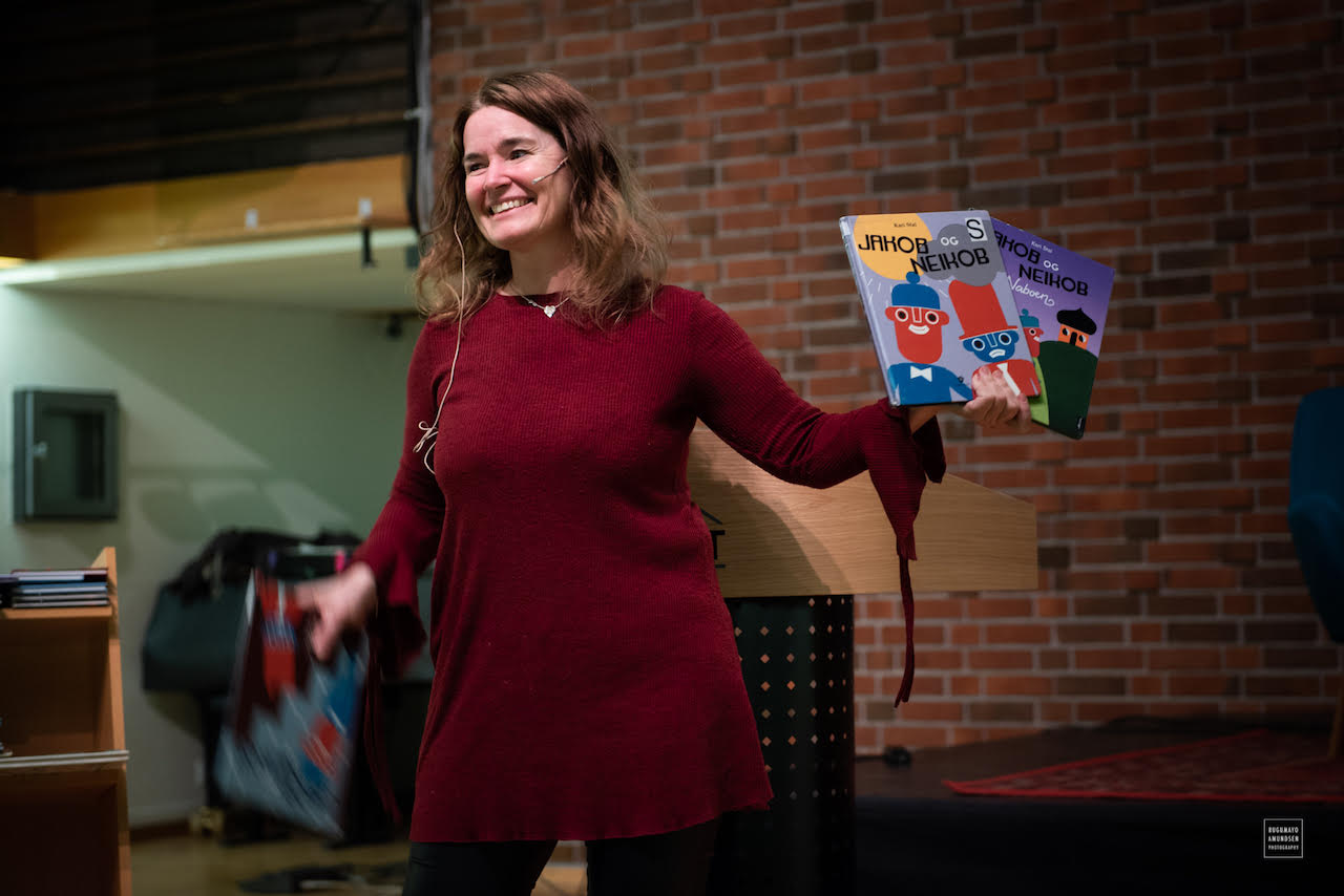 Skodespelar Reidun Melvær Berge ved Teater Vestland deler tips til høgtlesing. Foto: Espen Nyttingnes, Rakkar as / Teater Vestland