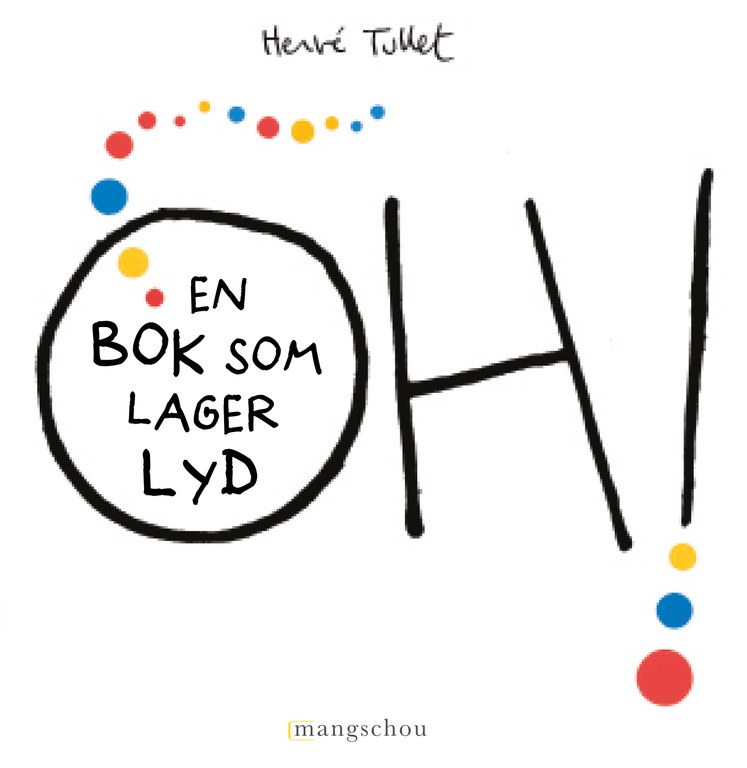 «Oh! En bok som lager lyd» av Hervé Tullet er ei bok for dei minste, full av intense fargar med enkle illustrasjonar.